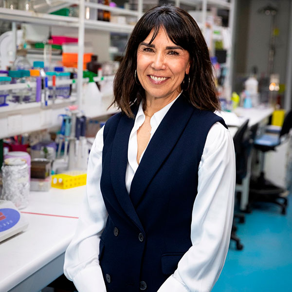 Dra. Francisca Blanco. Académica de la Universidad Andrés Bello (UNAB), donde dirige el Laboratorio de Fitopatología Molecular desde 2012. Investiga la interacción planta–insecto, con énfasis en señalización de defensa y dinámica de la pared celular en Arabidopsis thaliana, mediante enfoques de biología de sistemas.